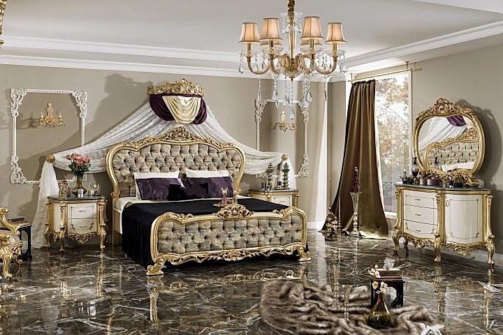 SRC klasik yatak odası takımı, göz alıcı göz alıcı özelliklere sahip. Öncelikle yoğun oyma motifleriyle, yaşam alanlarınıza saray esintisi getiriyor. Tüm gözleri üzerine çeken şık tasarımlara sahip yatak odası takımlarımız, arzu ettiğiniz de cibinlikli tasarımlara da sahip. Karyola, makyaj aynası, komodin ve gardıroptan oluşuyor. Takımlarımızın geneli yoğun oyma motifler, gerçek altın varaklar ile cilalı muhteşem bir görünüme sahip. Farklı renk seçenekleri olan klasik yatak odası takımlarımız, bu sayede kullanıcısına farklı konseptler sunuyor. Yatak odası takımlarımız aynı zamanda olası kazaların ve çarpmaların önüne geçmek üzere, frenli menteşe ve özel ray sistemiyle üretildi.